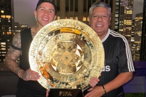 阿根廷足协主席塔皮亚现场观看了这场比赛,赛后他与恩佐手捧世俱杯奖杯合影,塔皮亚在社交媒体上晒出照片。