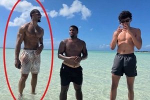 体育资讯8月9日讯 美媒NBA Memes晒出了一张骑士内线埃文-莫布里的照片。照片中,(左边的)莫布里的肌肉明显比以前更发达。